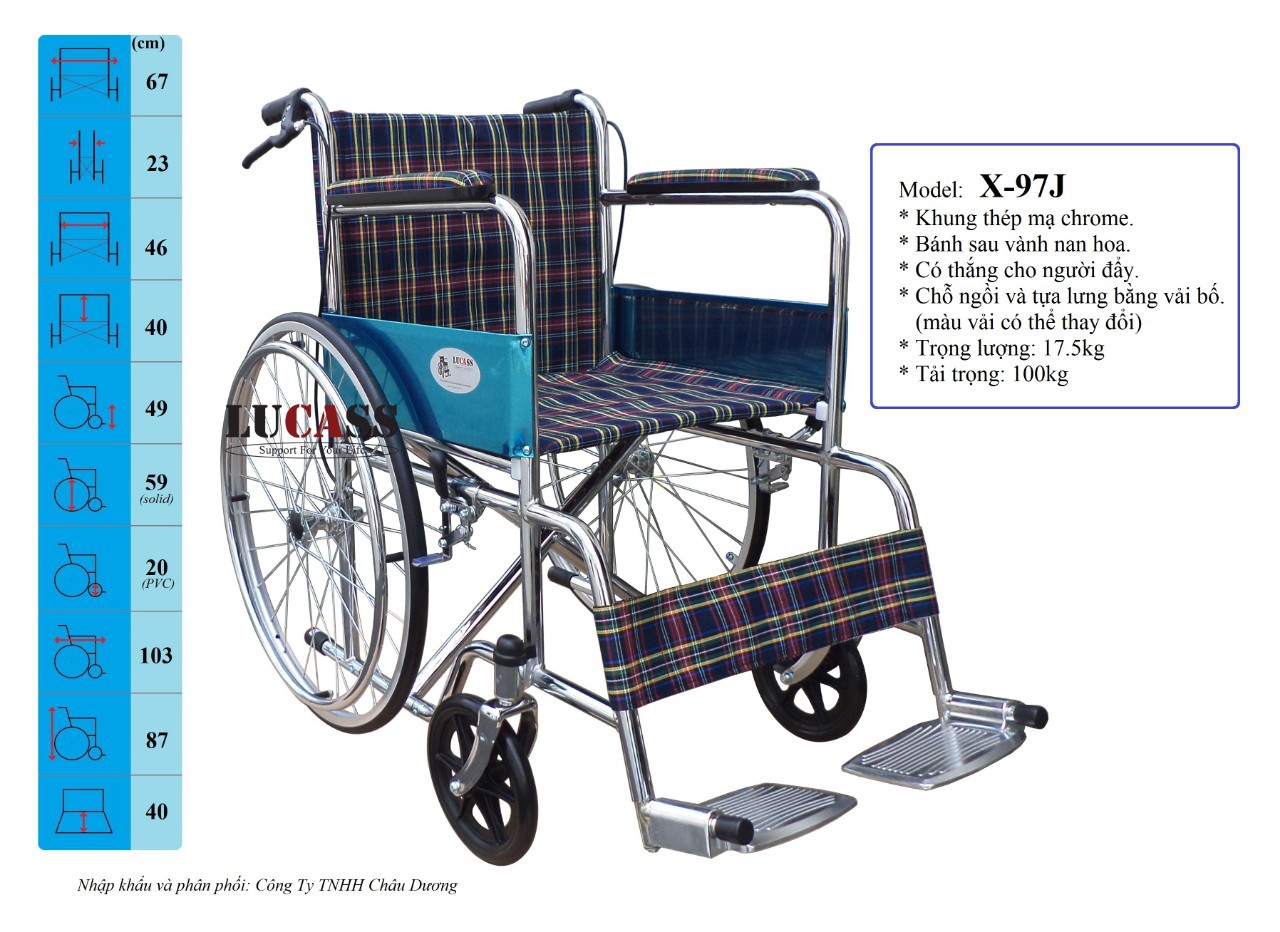 Xe lăn bánh căm thắng tay X-97J (vải caro)